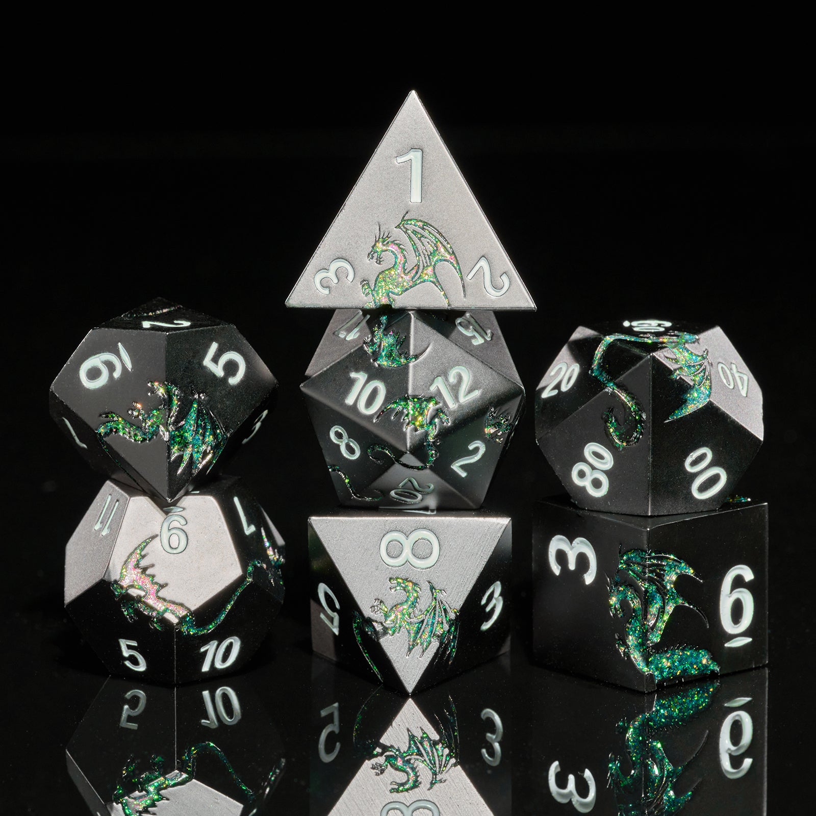 Metal Dice Set D&D 7 PCS Dragon Metallic DND Dice Set(GlitterGreen)