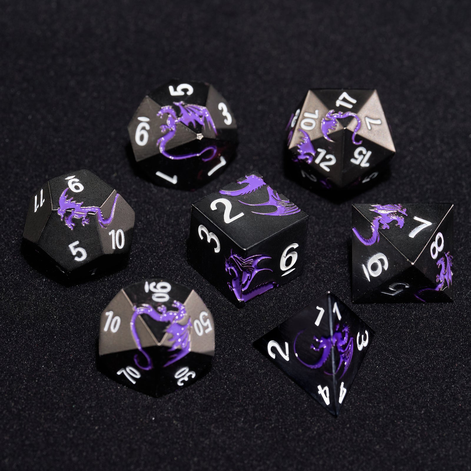 Purple DND Metal Dice, 7 PCS Heavy Metallic D&D Dice Set for Dungeons and Dragon Tabletop Game(BlackPurple)